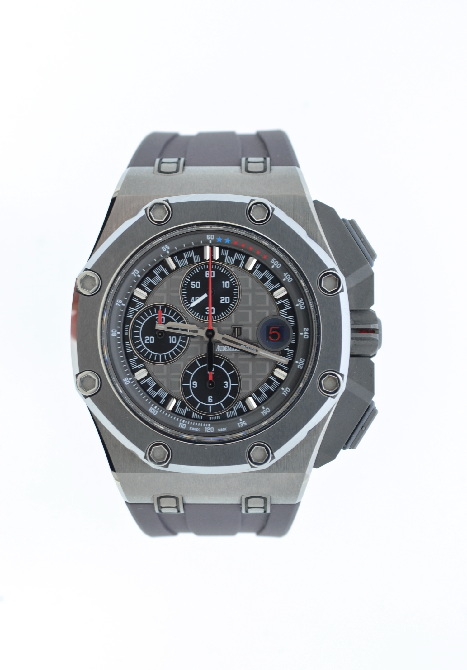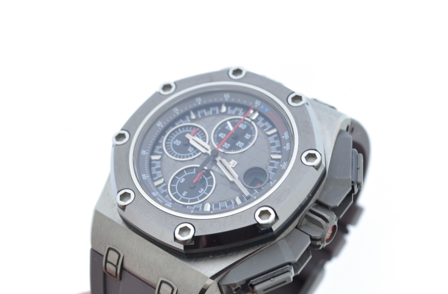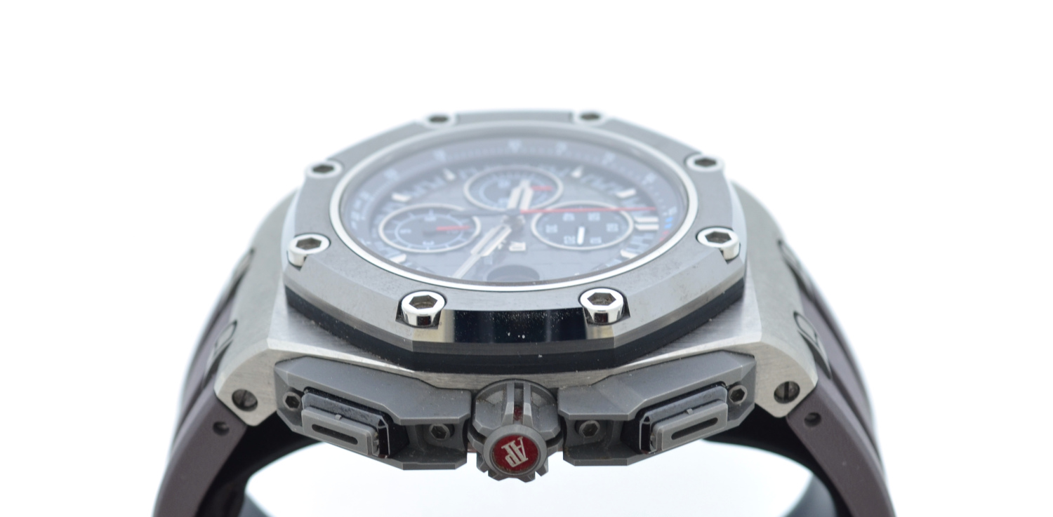 Like new and very rare Audemars Piguet Royal Oak Offshore 44mm Michael Schumacher limited edition 1000 pces, No box and no papers. Audemars Piguet extract of archives