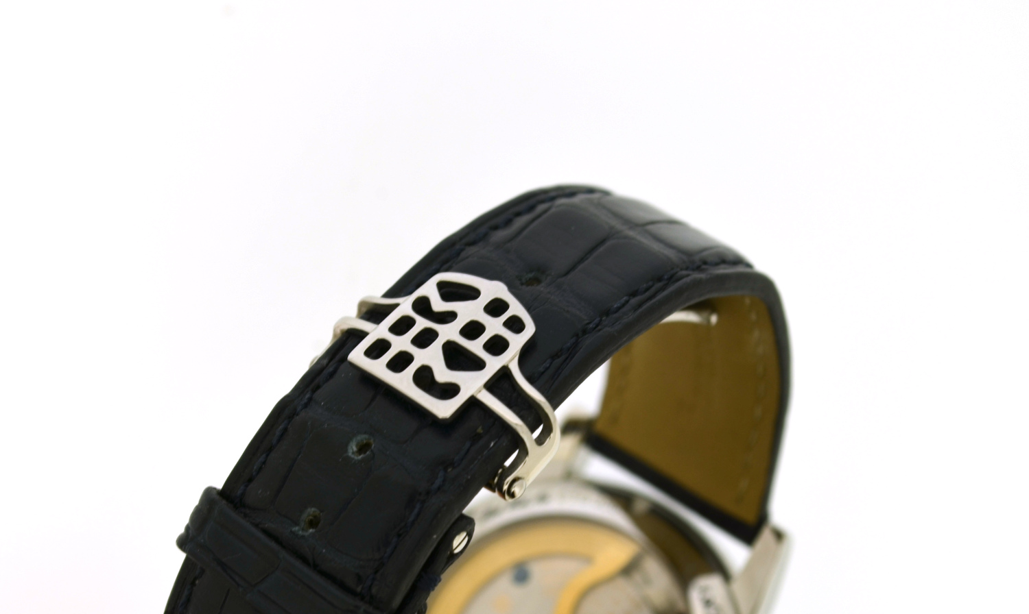 Bracelet : Blue alligator strap with stainless steel deployant clasp
