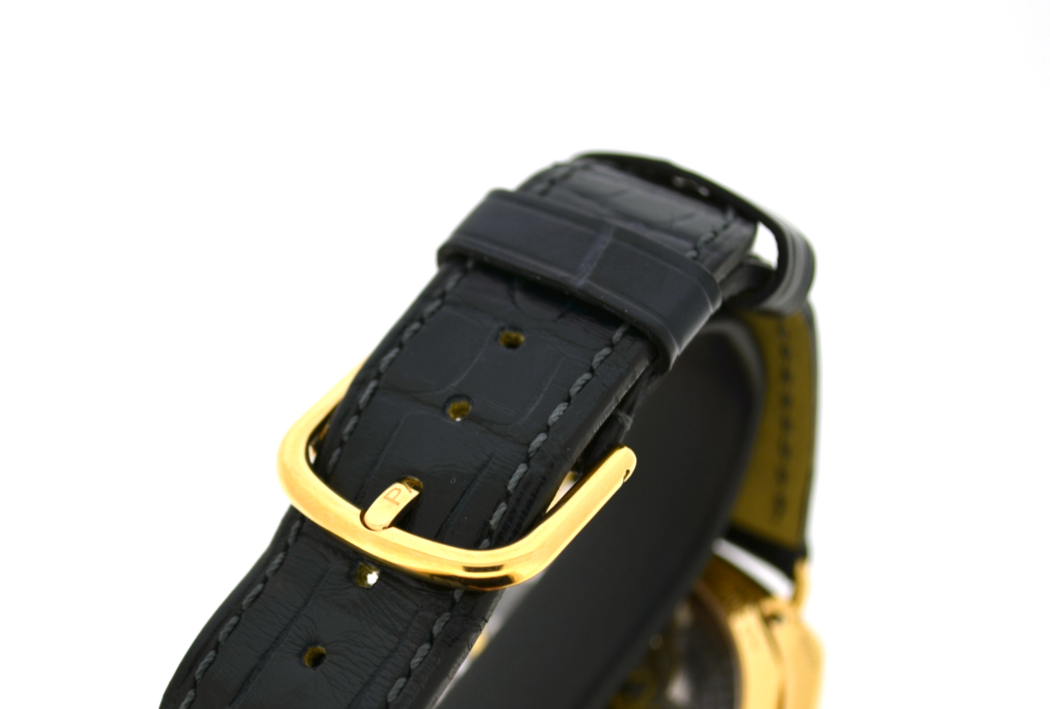 Material : Diameter 47 mm, polished Goldtechโ„ข, Blue with luminous Arabic numerals and hour markers