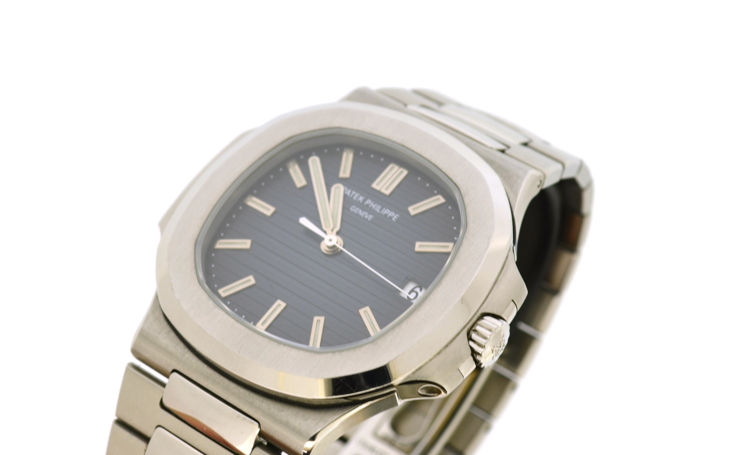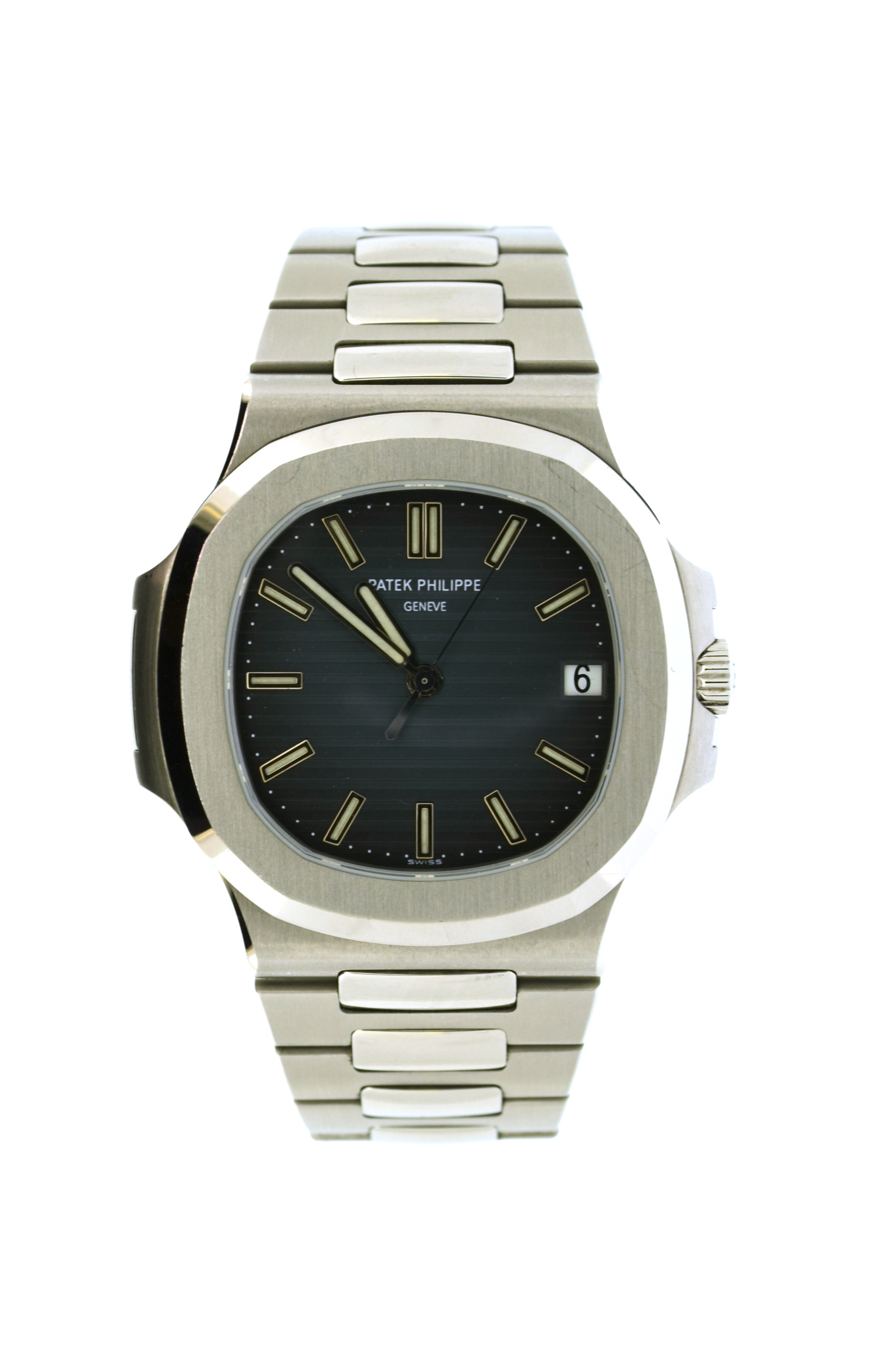 Very rare and discontinued Patek Philippe Nautilus blue dial, full set from 2008, poinรงon de Genรจve, salon Patek Geneva delivered