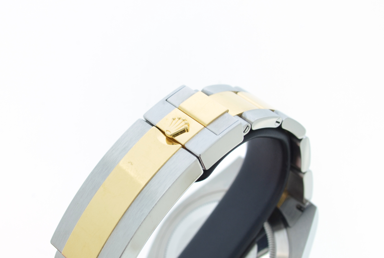 Bracelet : Yellow Rolesor – combination of Oystersteel and yellow gold, Oyster, three-piece solid links, Folding Oysterlock safety clasp with Rolex Glidelock extension system