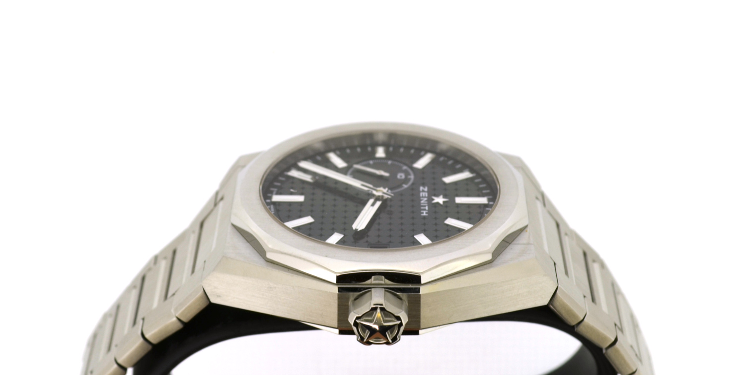 Mouvement : Selfwinding, El PrimeroHours and minutes in the centre. Date indication at 3 o’clock. 1/10th of a second indication at 9 o’clock